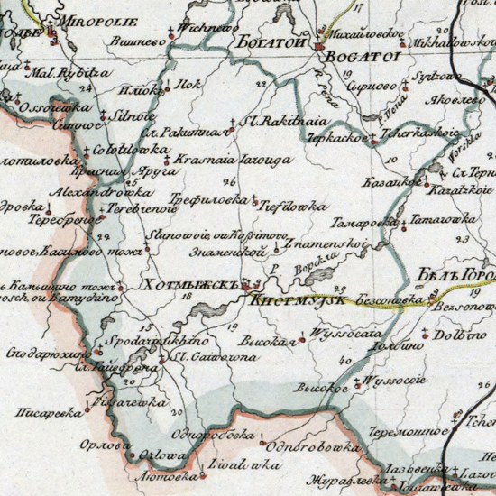 карта части Курской губернии с Грайворонским уездом 1821 года.
