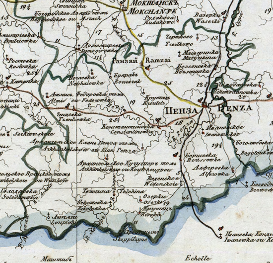 карта части Пензенской губернии с Пензенским уездом 1821 года.