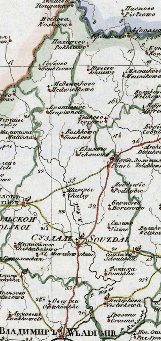 карта части Владимирской губернии с Суздальским уездом 1821 года. Данные границы уезда сохранились до революции.