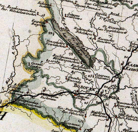 Вологодский уезд времён Павла Первого (в 1800 году).